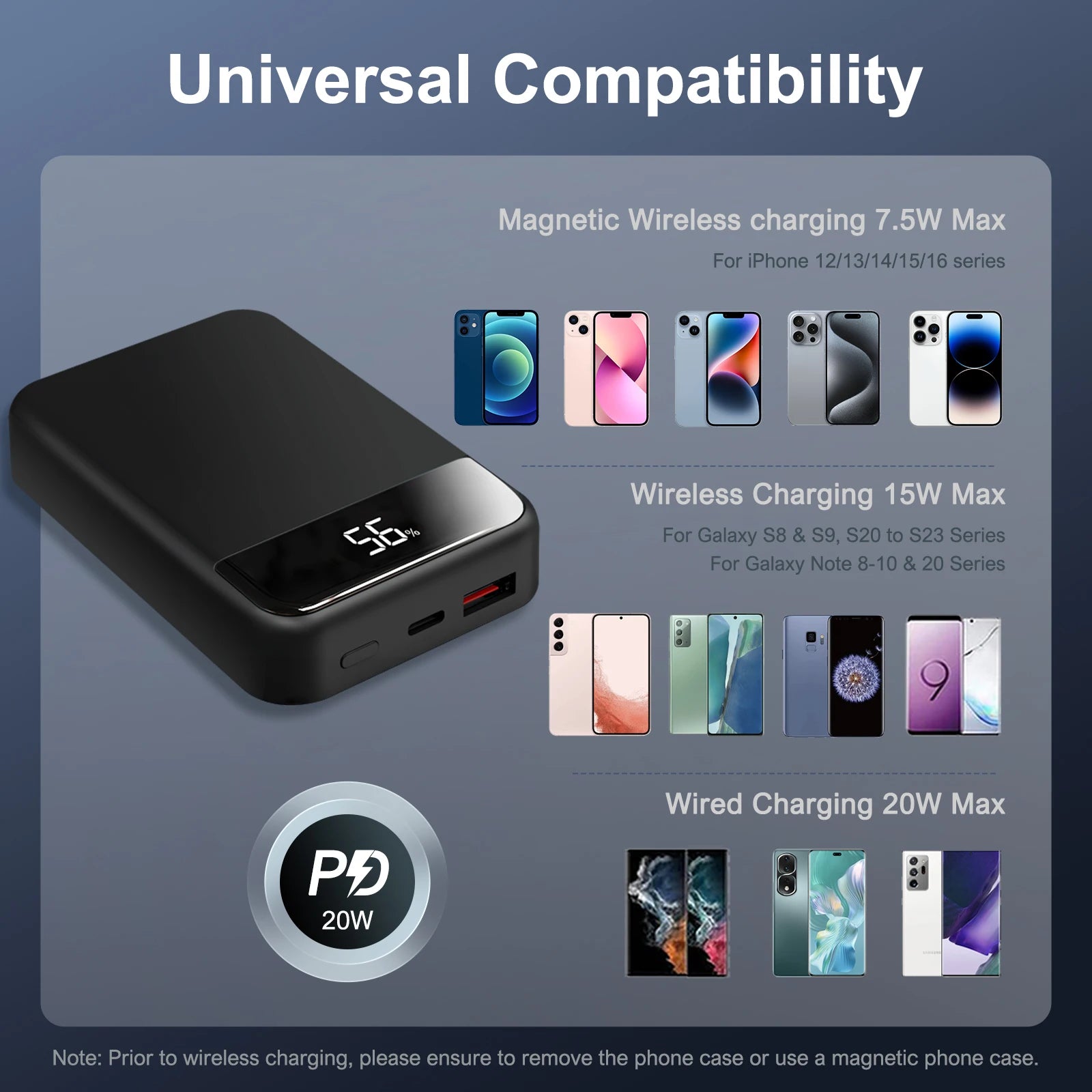 Charge your devices quickly and conveniently with the Magnetic Wireless Portable Charger Power Bank. With a 10000mAh capacity and PD 20W fast charging, it ensures your iPhone or Qi-enabled device is powered up efficiently, whether at home, office, or on the go.