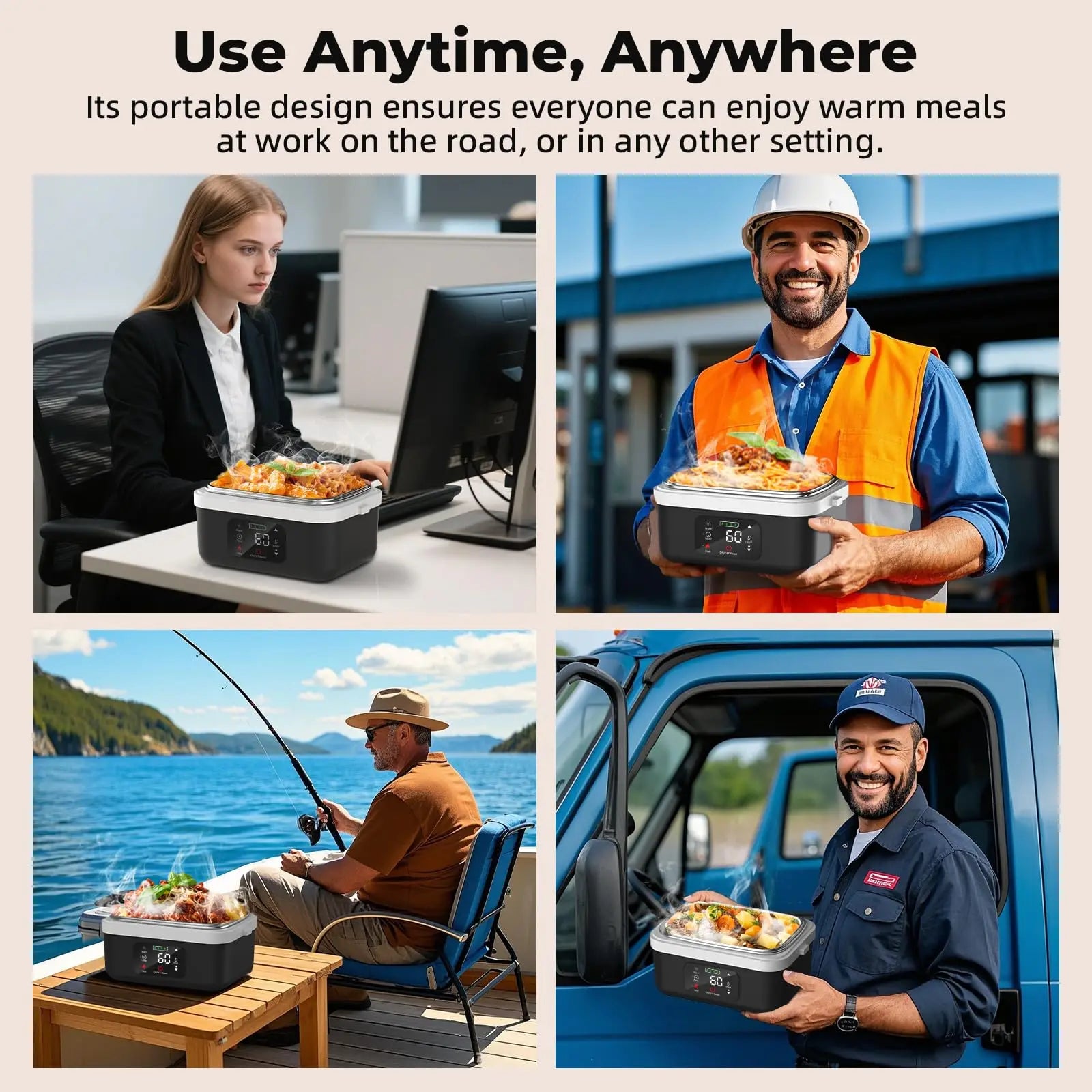 Enjoy hot, fresh meals anywhere with the Wireless Electric Heated Lunch Box. Built with an 8000mAh rechargeable battery and a 60W heating system, it quickly warms your food without needing a power outlet.